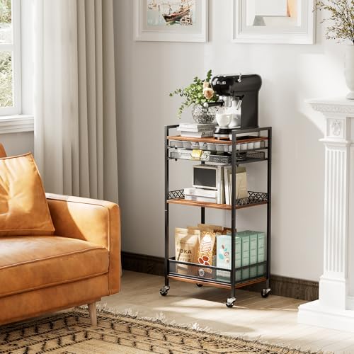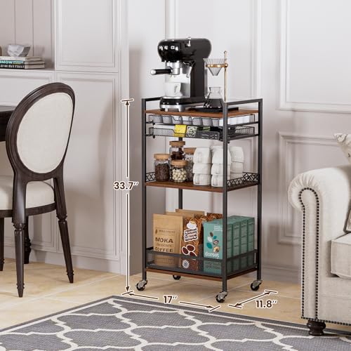 【Premium Material Construction】The coffee bar cart is made using steel and MDF for unrivalled stability and durability. It also maintains long-lasting stability for everyday use, and the wheels are designed to allow for easy position changes at any time in the kitchen, dining area, or office coffee station.