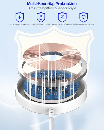 [Superior Safe Intelligent Protection] The magnetic wireless charger has built-in safeguards to protect phone against over-current, overheating, over-charging, overloading and short-circuit,greatly protect your phone battery from damage, extends its battery life