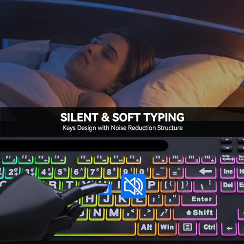 MARVO Large Print Backlit Keyboard, WK712 Wired Computer Keyboards with 7 Colors & 11 Modes Backlight, Tablet Phone Holder and Quiet Light Up Keys, Full-Size Gaming Keyboard for Windows, Mac