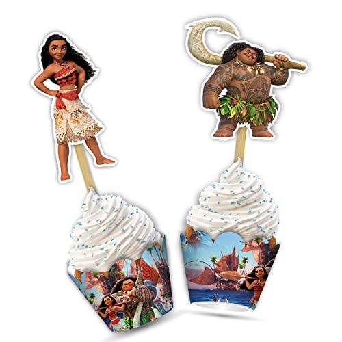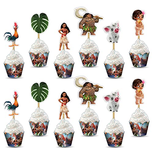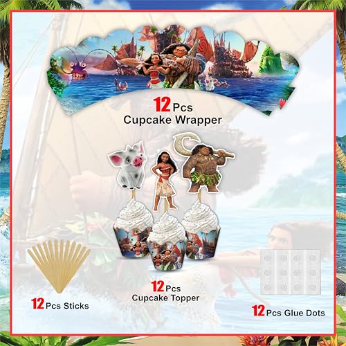 Mna Cupcake Wrapper Decorations for Girls Birthday Party – Tropical Island Princess Theme Cupcake Liners – Cartoon Character Party Supplies for Baby Shower or Ocean Themed Celebration.