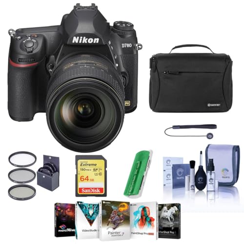 You can elevate your photography and videography to professional heights with the Nikon D780 FX-Format DSLR Camera, paired with the versatile AF-S NIKKOR 24-120mm f/4G ED VR Lens. This bundle is a treasure trove for creatives eager to explore the full potential of full-frame imaging, offering a harmonious blend of speed, precision, and high-resolution capabilities.The D780’s 24.5MP backside illuminated FX full-frame sensor is a marvel of light sensitivity, ensuring your photos and videos are rich with detail, even in challenging low-light conditions. The sensor’s design facilitates a shallow depth of field, allowing for beautifully blurred backgrounds that make your subjects pop.Focusing is a breeze with the D780’s advanced 51-point AF system, which includes 15 cross-type sensors and a borrowed autofocus algorithm from Nikon’s flagship D5, providing lightning-fast and razor-sharp focusing. For Live View and video, the camera boasts a 273-point phase-detection AF system that ensures comprehensive frame coverage and subject tracking.The D780 isn’t just about stills; it’s a formidable tool for video creators as well. It supports 4K UHD video recording and offers creative features like slow motion, time-lapse, and selectable in-camera shutter speeds for long exposures without the need for a remote. Videographers will appreciate the 10-Bit N-Log and HDR (HLG) formats that retain more detail and dynamic range, along with built-in timecode for multi-camera sh