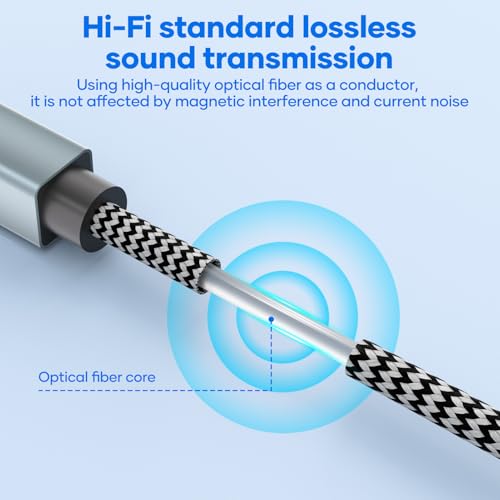 Lossless Sound Quality: The optical audio cable delivers a distortion-free,lossless audio experience.This Toslink cable is compatible with uncompressed PCM audio and compressed 5.1 to 7.1 surround sound systems,including Dolby Digital Plus,DTS-HD,and LPCM.This digital optical audio cable ensures a wide dynamic range for an immersive listening experience.