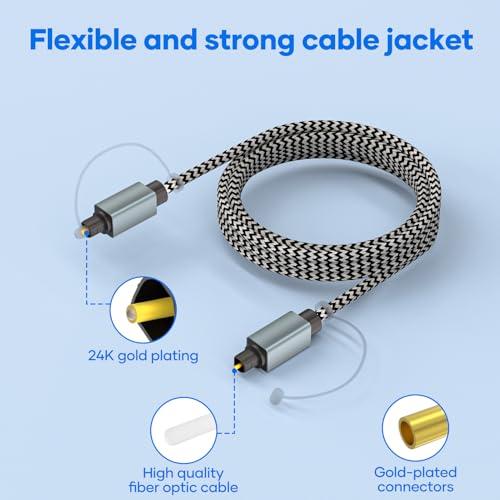 ![Optical Audio Cable Toslink Cable 3m,S/PDIF Optical Digital Audio Cable - [Braided,Gold-Plated Connectors,Aluminum Shell] Fiber Optic Cable for Soundbar,TV,Stereo System,Home Theater,Xbox/PS4,Sonos](https://m.media-amazon.com/images/I/41ki2sOHZBL.jpg)