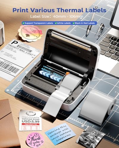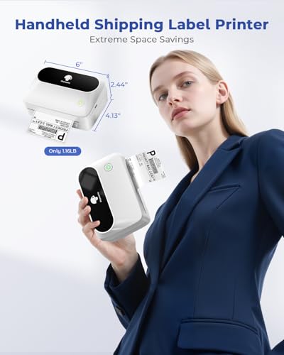 Smaller, Lighter and Space Saving Design : The Phomemo M421 label printer is compact. small and lighter than traditional shipping label printer, taking up less space on your desk. The thermal label printer support print barcode, address, shipping labels and more, ideal for home, office, small business, warehouse, shared workspaces etc.