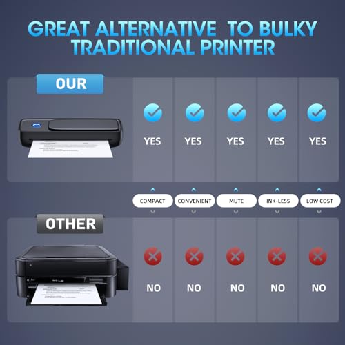 Portable Printer Wireless for Travel,Bluetooth Thermal Printer Support 8.5″ X 11″ US Letter &Legal, A4&A5 Thermal Paper, Inkless Compatible with iOS, Android & Laptop for Office Car Home