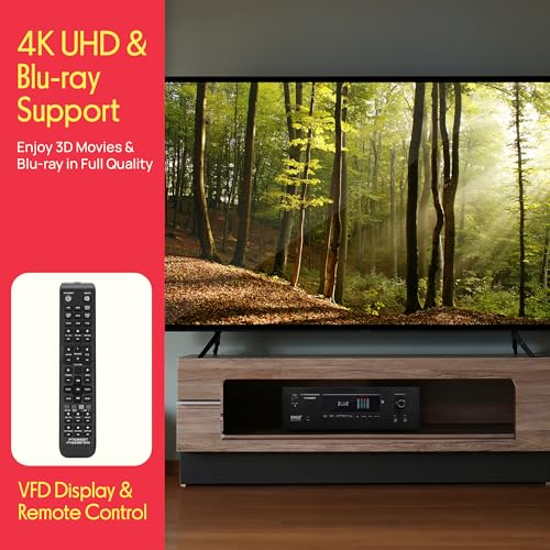 4K UHD TV SUPPORT: The AV digital amp box is equipped w/ 4K Ultra HD TV, 3D and Blu ray video pass-through support w/ dedicated RCA subwoofer output; Connect and stream audio/video from external devices via USB, RCA, HDMI, optical/digital audio