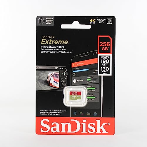 SanDisk 256GB Extreme MicroSDXC UHS-I Memory Card – C10, U3, V30, 4K, A2, Micro SD – SDSQXA1-256G-GN6MN