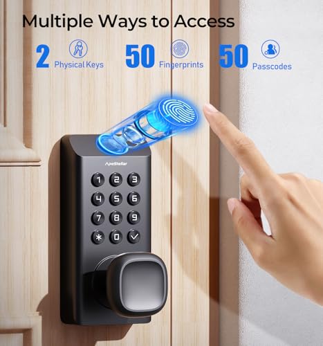 Keyless Entry Door Lock: The Apestellar Fingerprint Smart Lock is powered by 3rd-Generation Fingerprint Recognition Technology, supporting up to 50 stored fingerprints and an unlocking time of under 0.3 seconds—making entry and exit effortless.