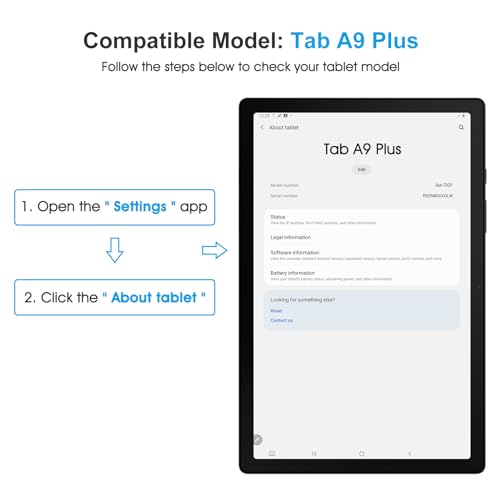 Compatibility: Please verify your tablet model before purchasing to ensure compatibility with the Samsung Tab A9 Plus 11 inch