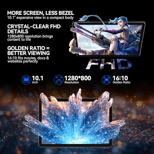 [Immersive Visuals, Cinematic Experience] This Android 15 tablet featuring a vibrant 10.1-inch 1280×800 HD IPS screen, it brings Netflix shows and movies to life with vivid colors and sharp detail. The anti-glare display provides comfortable viewing, whether you’re relaxing in bed or commuting. Its lightweight and portable design, weighing less than a paperback novel, ensures a perfect fit and comfortable grip. Dual stereo speakers deliver an immersive audio experience, providing clear and rich sound for action movies or video conferences.