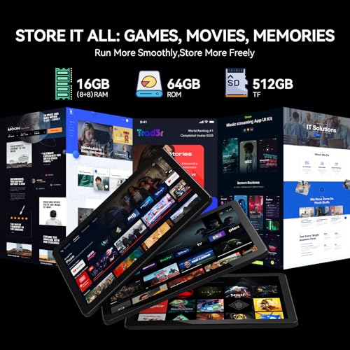 [Powerful Performance, Say Goodbye to Lag] This 10.1-inch tablet is equipped with a high-performance MTK6769 Octa-core chip and a massive 16GB (8GB+8GB) RAM. Whether you’re Browse social media, processing work documents, or running casual games, it delivers a buttery-smooth experience, eliminating lag. The 64GB internal storage easily accommodates vast files and multimedia, and it supports up to 512GB TF card expansion, meeting your ever-growing digital storage needs.