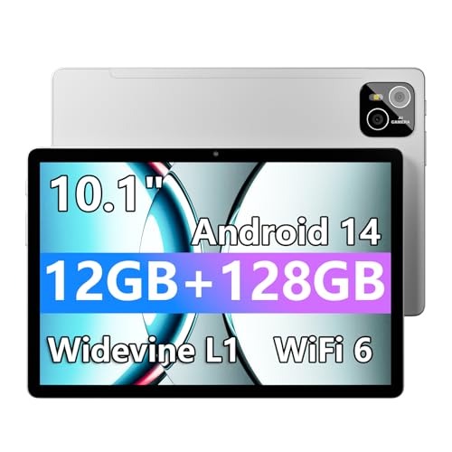 Tablet, 10.1 inch Android Tablet, Octa-core Processor, 12GB RAM 128GB ROM (Up to 1TB), 1280×800 HD IPS Touchscreen, 2 Years Protection, WiFi 6 BT 5.4, 6000mAh, Dual Camera, Widevine L1, Sliver