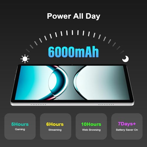 Long-Lasting Battery and Cutting-Edge Connectivity – Equipped with a 6000mAh battery, this tablet provides up to 10 hours of uninterrupted use for streaming, work, or play. With next-gen WiFi 6 and BT 5.4, enjoy faster downloads, smoother online gaming, and more stable connections.