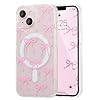 UEEBAI Magnetic for iPhone 15 Case, Bow Case Compatible with MagSafe, Wireless Slim Clear Ribbon Aesthetic Phone Cover Anti-Yellowing Shockproof Protective Cover for Women Girl – Pink