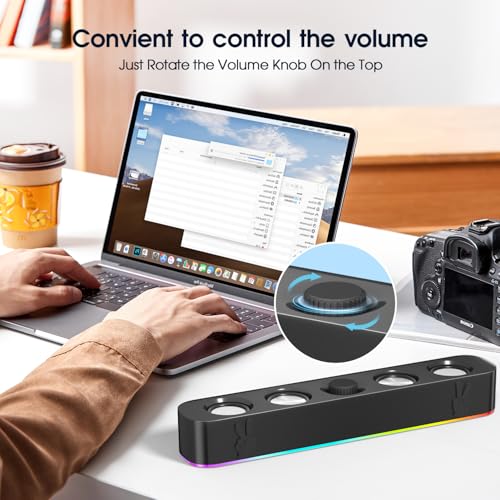 USB Computer Speakers,Wired USB-Powered Bluetooth Computer Sound Bar with RGB & Volume Knob for PC Desktop Computer and Laptops(Black)