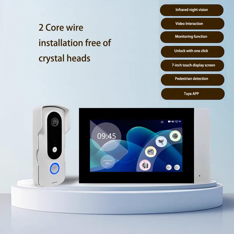 bqoeesok Wired 7-inch Smart Video Doorbell with Touchscreen Chime | 2K Head-to-Toe View | 24/7 Recording & No Monthly Fee | 20-User Tuya App | Stable Wired Power, No Battery Needed Tired of constantly charging your video doorbell or dealing with unreliable wireless signals? Meet the bqoeesok Wired Smart Video Doorbell, the ultimate convenience upgrade for your front door. Designed for homeowners who value reliability and simplicity, our doorbell delivers continuous, crystal-clear monitoring without the need for batteries or complex setups. Simply connect two wires to your existing doorbell wiring (16-24VAC), and enjoy peace of mind with 24/7 protection. Never Charge Again: Effortless 2-Wire Installation Forget drilling multiple holes or hiring an electrician. Our innovative 2-wire connection makes installation a breeze. Just connect to standard low-voltage doorbell wiring, and you’re done! This seamless setup ensures your doorbell is always powered, eliminating battery anxiety and unreliable wireless performance. It’s the perfect solution for DIY enthusiasts and busy families alike. Always-On 7-Inch Touchscreen for Instant Glance Answering See who’s at the door without searching for your phone. The brilliant 7-inch HD display mounts conveniently in your kitchen, living room, or hallway, providing a crisp 2K live feed the moment someone approaches. Whether you’re cooking, watching TV, or managing chaos, a quick glance keeps you connected to your front door. Smart Home Integration with 20-User Tuya App Share secure, customized access with family, neighbors, or trusted visitors. Through the intuitive Tuya Smart App, up to 20 users can receive real-time alerts, communicate with guests via two-way audio, or remotely unlock the door. It’s perfect for coordinating package deliveries, welcoming guests, or checking on kids after school. Dual Storage Freedom with Zero Monthly Fees Take control of your data. Choose to automatically save video clips to a local microSD card (supports up to 256GB) or opt for encrypted cloud storage. Unlike subscription-based brands, we never charge monthly fees. Your privacy and your budget remain protected. Convenient Package Alerts & Visitor Logging Stay informed without security hype. Receive gentle notifications when deliveries arrive or guests stop by. The doorbell automatically logs events with video snippets, creating a handy record of everything that happens at your doorstep—so you never miss a package or visitor. Technical Specifications: Power: Hardwired (16-24VAC) Display: 7-inch HD Touchscreen Video: 2K Resolution with Color Night Vision Viewing Angle: 180° Ultra-Wide Connectivity: 2.4GHz WiFi for App Control Storage: microSD Card (up to 256GB) or Cloud Weatherproof Rating: IP65 Ideal For: Homes with existing doorbell wiring Families seeking shared access Anyone tired of charging batteries Budget-conscious users avoiding subscriptions Upgrade to the simplicity and reliability of bqoeesok. With its effortless installation, always-on display, and smart features, it’s the only doorbell you’ll ever need. Box Includes: 1x Wired Video Doorbell 1x 7-inch Touchscreen Chime 1x Installation Kit & Wiring Guide 1x Quick Start Manual *Note: Requires existing doorbell wiring (16-24VAC). Compatible with most standard systems.*