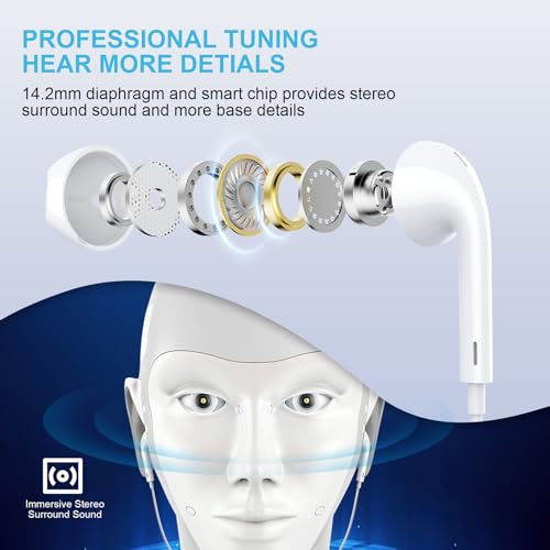 【HIFI Stereo Wired Earbuds】High quality chip paired with 14.2mm dynamic and professional tuning present excellent high resolution acoustics. HIFI stereo surround sound, bass and more sound details, making it an excellent music earphones that allows you to immerse yourself in the music world