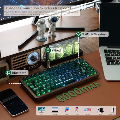 Womier 75% Mechanical Keyboard Wireless with QMK/VIA, WD75 V2 Wood Gaming Keyboard 8000mAh Battery, Tri-Mode Custom Key Board RGB Hot Swappable with Translucent Clear Keycaps-POM Linear Switch