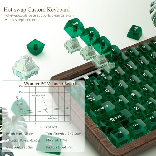 Hot-swap Gaming Keyboard & Full POM Linear Switches: Wireless mechanical Hot swappable keyboard It has five layers of sound-absorbing fillings, providing a soft, cushioned typing feel and a delightful typing sound. Compatible with both 3-pin and 5-pin switches. keyboard pre-installed custom womier full POM linear switches, perfect for gaming and typing. The 55 gf drive and 2.0mm pre-travel is sufficient for instant response, but sufficient to prevent accidental keystrokes.
