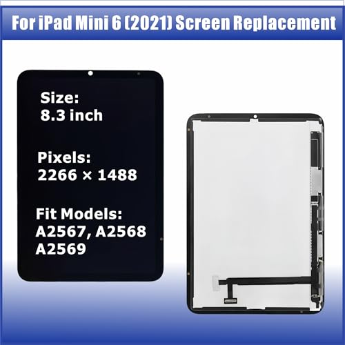 for iPad Mini 6 2021 Screen Replacement: This for iPad Mini 6 LCD display is compatible with iPad Mini6 2021 A2567 A2568 A2569 8.3 inch, please confirm your device model before placing an order.