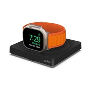 Belkin Apple Watch Charger – Fast Wireless Charging Pad – Travel Charger with Nightstand Mode W/USB-C Cable Included for Apple Watch (Compatible with All Models) – BlackMADE FOR APPLE WATCH: This sleek charging pad can quickly charge your Apple Watch Series 8 and Apple Watch Series 7, charging from 0% to 80% in about 45 minutes. This Apple Watch charger is compatible with all Apple Watch models